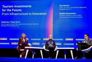 Mrs Zerva had the pleasure of moderating the panel discussion on “Tourism Investments for the Future: From Infrastructure to Innovation” where along with the esteemed speakers Vasiliki Koutsoukou, Secretary General for Tourism Policy and Development and Ilias Betzios, Senior Associate, at Koutalidis Law Firm, they underlined the importance of upscaling touristic investments, due holistic governance of touristic and critical infrastructure, as well as the adoption of innovative technologies in strengthening the competitiveness and long-term sustainability of the tourism industry. The discussion also emphasized on how collaboration between the public and private sectors can further support Greece’s position as a leading global tourism destination, and they saluted the upcoming legislation on Special Planning for Tourism.