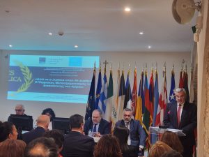 The conference concluded with a comprehensive presentation of the outcomes by Mr. Konstantinos Koussoulis, Honorary Vice President of the Council of State, Director of the Legal Office of the Presidency of the Republic, and Chair of the Permanent Scientific Committee of the Ministry of Justice for examining the impact of Artificial Intelligence on the judicial system.